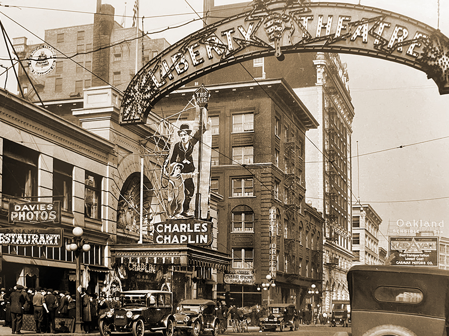 | The Liberty Theatre was a first-run house in downtown Portland. The theatre was renamed the Music Box Theatre and was in operation long enough to make the conversion to Vitaphone sound film presentation. Portland’s street numbering changed in 1933. In later years, the theatre was owned by Hamrick-Evergreen Theatres. This Liberty Theatre is not the neighborhood Liberty Theatre located at 28th Avenue at Couch Street. The theatre building was demolished, and an office building stands on the block. Many years later, at least from the 1960s through the 1980s, a Music Box Theatre operated in a location farther south on Broadway just north of the Heilig/Mayfair/Fox theatre. That location is now a Banana Republic retail store. References: |